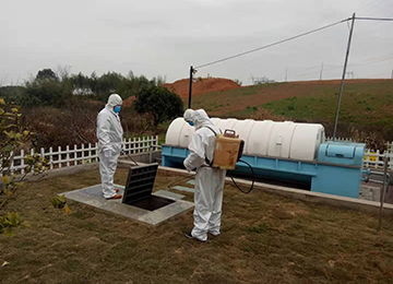 2021年12月22日科然環(huán)境運維組員工為號召國家防控疫情政策,對各個終端和管網(wǎng)的污水池進(jìn)行全面的清掏、消殺工作。運維組消殺人員配有專業(yè)的防護服、手套、口罩以及專業(yè)的消殺工具。